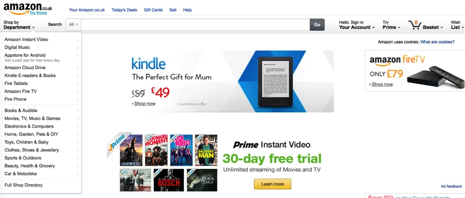 Back in 2016, Amazon used to offer lots of navigation options including the category list on the left of the page.
