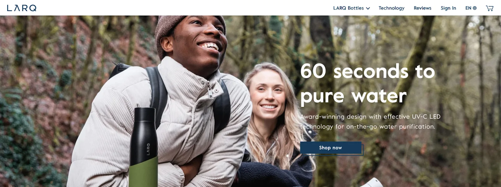 LARQ is a seller of self-purifying water bottles that were carefully engineered to solve many of the issues of traditional water bottles. LARQ needed an ecommerce platform that could not only scale with their growth but provide flexibility for customization. They also need specific features like multi currency because they were launching multiple international sites to expand their reach.