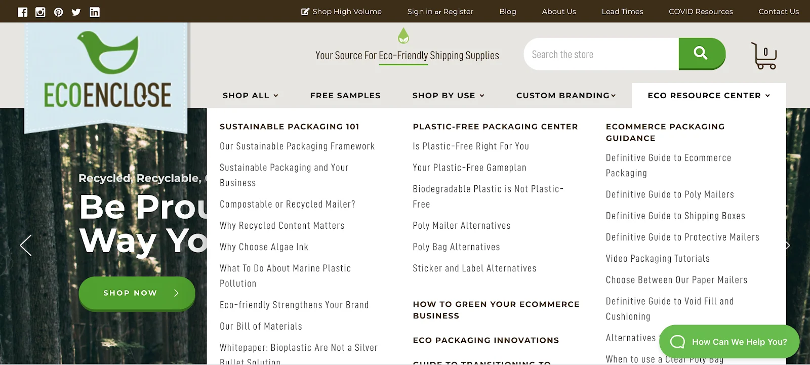 A customer could easily use their resources just to educate themselves about the sustainable packaging industry. However, they will also be more likely to return to EcoEnclose’s site as a source of information, and thus may be more likely to convert when they are ready to make a decision on their next packaging purchase.