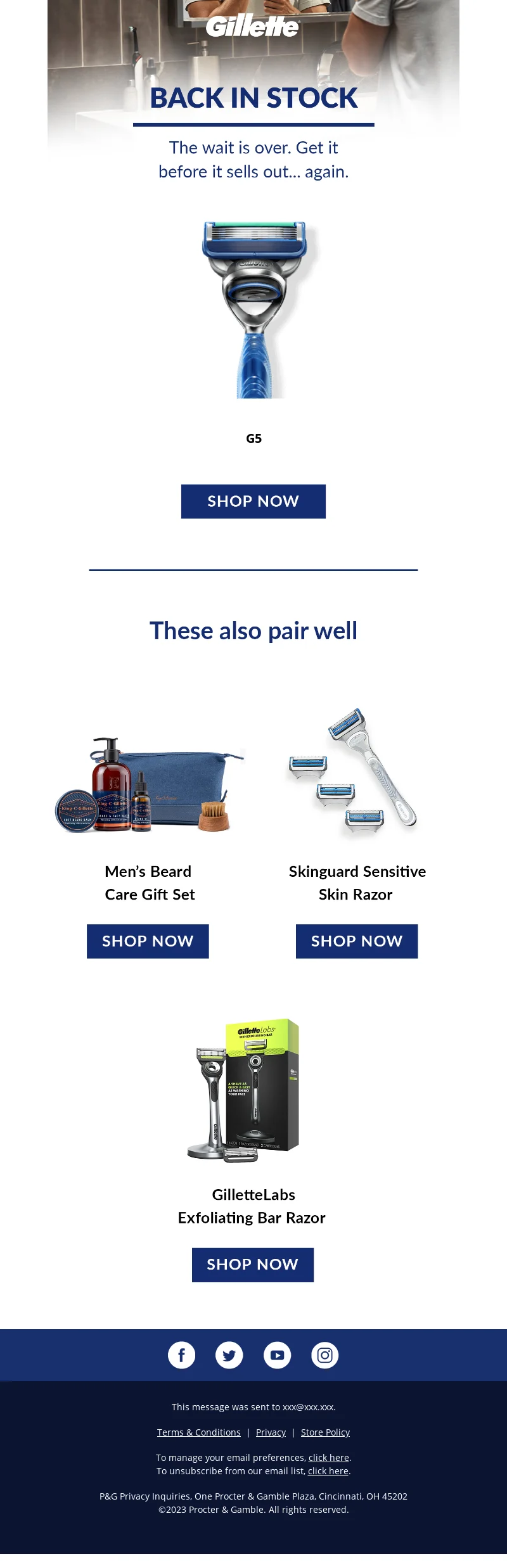 Back-in-stock. Highlight high-demand products are back in stock. Also, create a sense of urgency with "Grab them while you can!" language. Remind them that they signed up for these notifications.